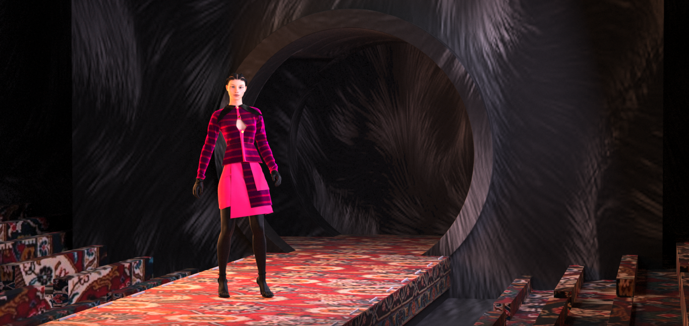 La diseñadora traduce arquitectura e historia en experiencia textil. Terciopelos densos, alfombras profundas y contrastes cromáticos evocan el misterio contenido entre muros que han respirado siglos.